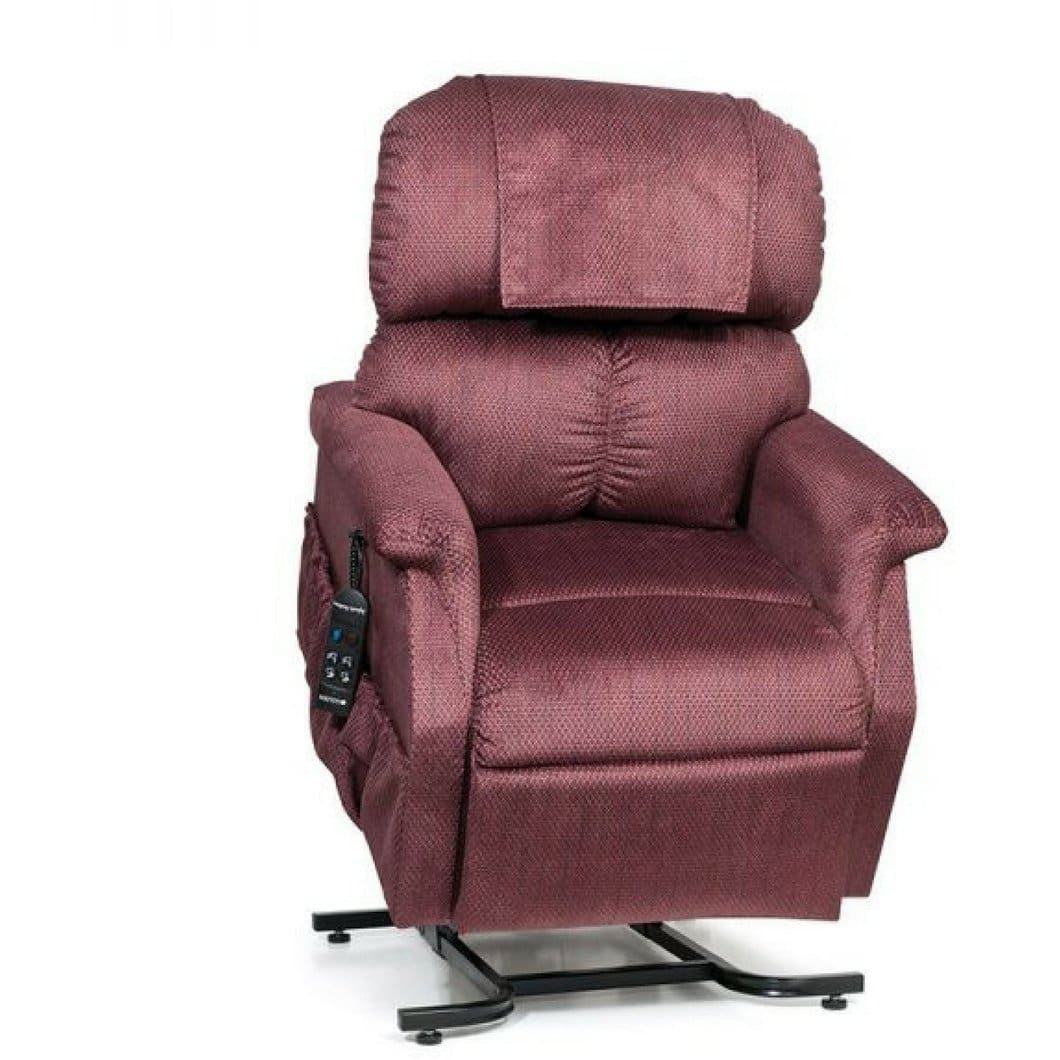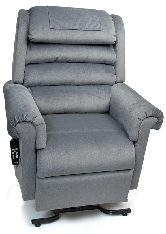 This has been one of Golden Technologies most popular chairs for years. The PR 505 Lift chair is a two motor chair which gives you the ability to basically sit anyway you want because one of the motors actually controls the back independently. It comes in 4 different sizes and is offered in multiple fabrics. The Maxi Comforter features a plush, seamed backrest with lumbar support, a soft, comfortable seat and our unique “grip rite” arm design. You have the ability to go to a zero gravity position which is great for lumbar issues. The difference between this and the PR 501 is that the PR 505 has two motors.