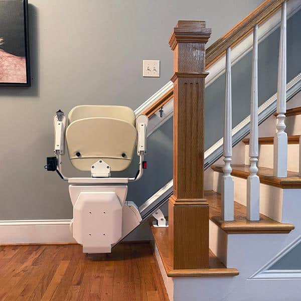 With the Atlas 500 stair lift, the lift unit takes up only a little more than 11 inches when folded, making it the most compact stair lift on the market! Giving others even more room to use the stairs.