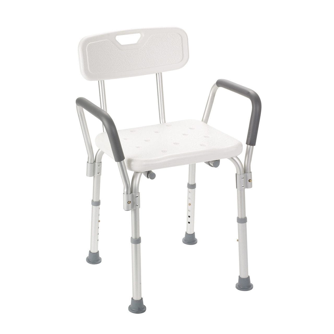 This bath bench from Drive Medical comes with comfortable backrest and Tool-Free removable padded arms. This bath bench is designed to provide added security, stability and comfort. The aluminum frame is lightweight and durable, as well as corrosion proof to ensure easy transferring and product longevity. The drainage holes in the seat reduce possible slipping ensuring user safety. The legs are adjustable to accommodate any size user. This item is made from recyclable material.