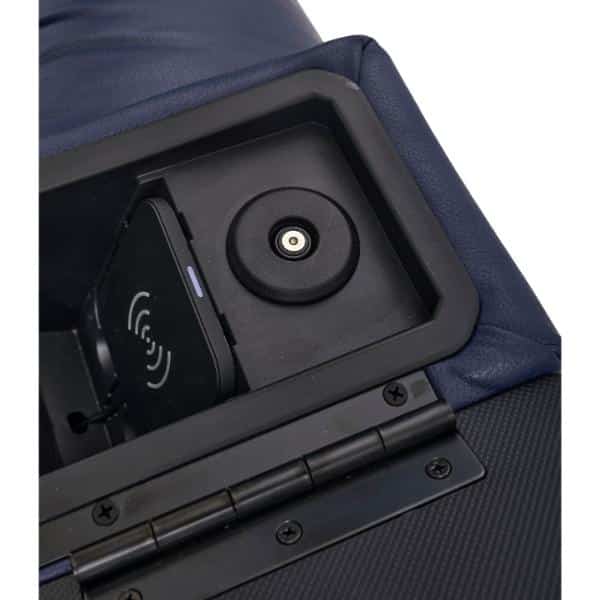 📱 Smart Arm Storage – wireless phone charger, drink holder, LED reading light, removable tray table & USB charging