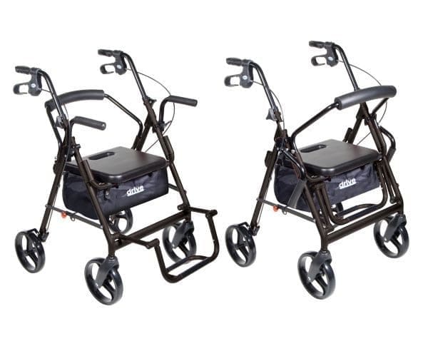 Drive Medical’s Duet combines the features of an independently rolled walker – also called a rollator – with the attributes of a transport chair that is pushed by a caregiver or loved one.