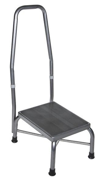A cross brace attached with aircraft rivets and 1″ steel tube manufacturing give this heavy duty bariatric footstool with hand rail by Drive Medical the strength you require. A hand rail attached to the stool only adds extra support. It can withstand a weight capacity of up to 500 pounds. The non-skid ribbed rubber platform and reinforced rubber tips on the legs provide a stable surface.