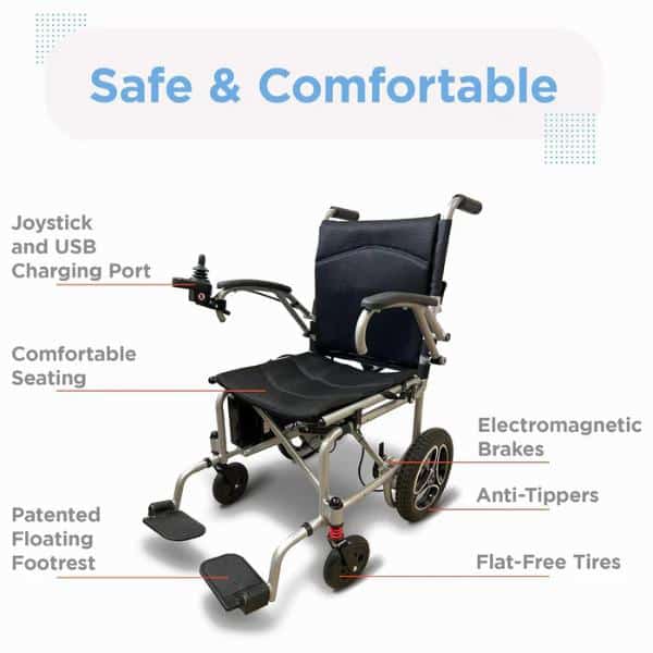 From lift-up armrests for easy transfers to electronic brakes and a 6.2-mile battery range, this chair is designed to make mobility stress-free.