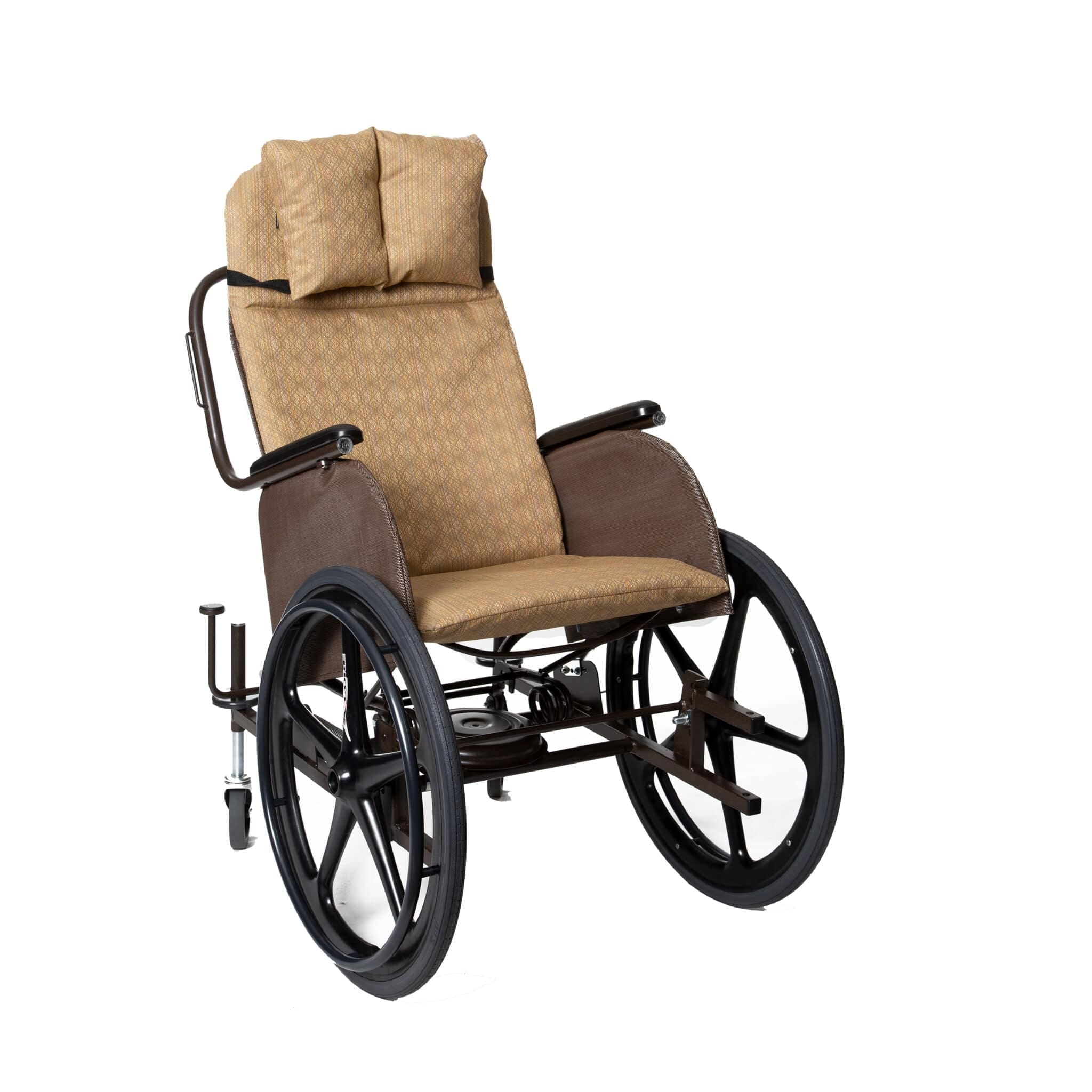 - Rocking Wheelchair with durable Sedona2 Mesh Fabric, 24″ Wheel Front, and 5″ Swivel Caster Back.