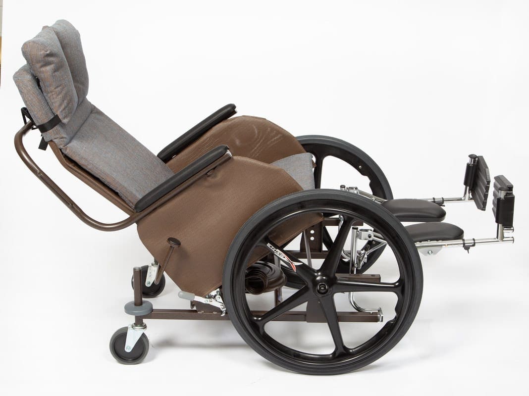 The ergonomic design helps to maintain proper posture by supporting the head, shoulders and lower back, which makes breathing and swallowing easier. The seat deck can be easily adjusted to the proper height from the floor to aid in leg comfort and assist selfpropulsion.