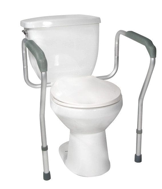 This sturdy and lightweight toilet safety frame by Drive Medical provides your customer with Waterfall armrests which provide additional comfort and support. Powder coated aluminum brackets which easily attaches the frame to toilet. The Arms are height and width adjustable conform to you.